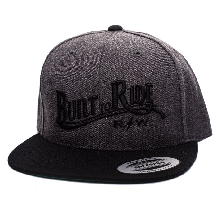 Cinzento com letras pretas “Built to Ride”